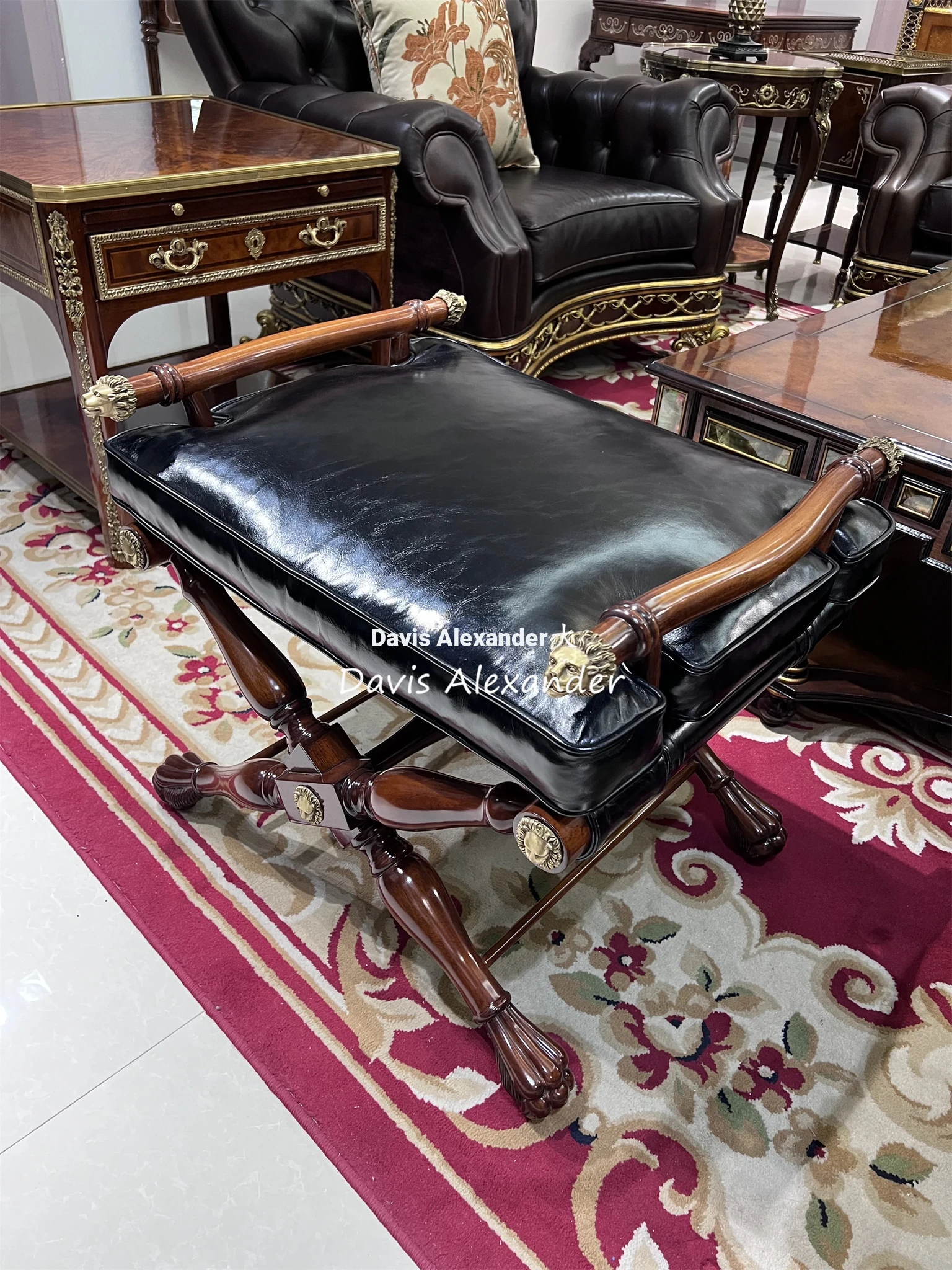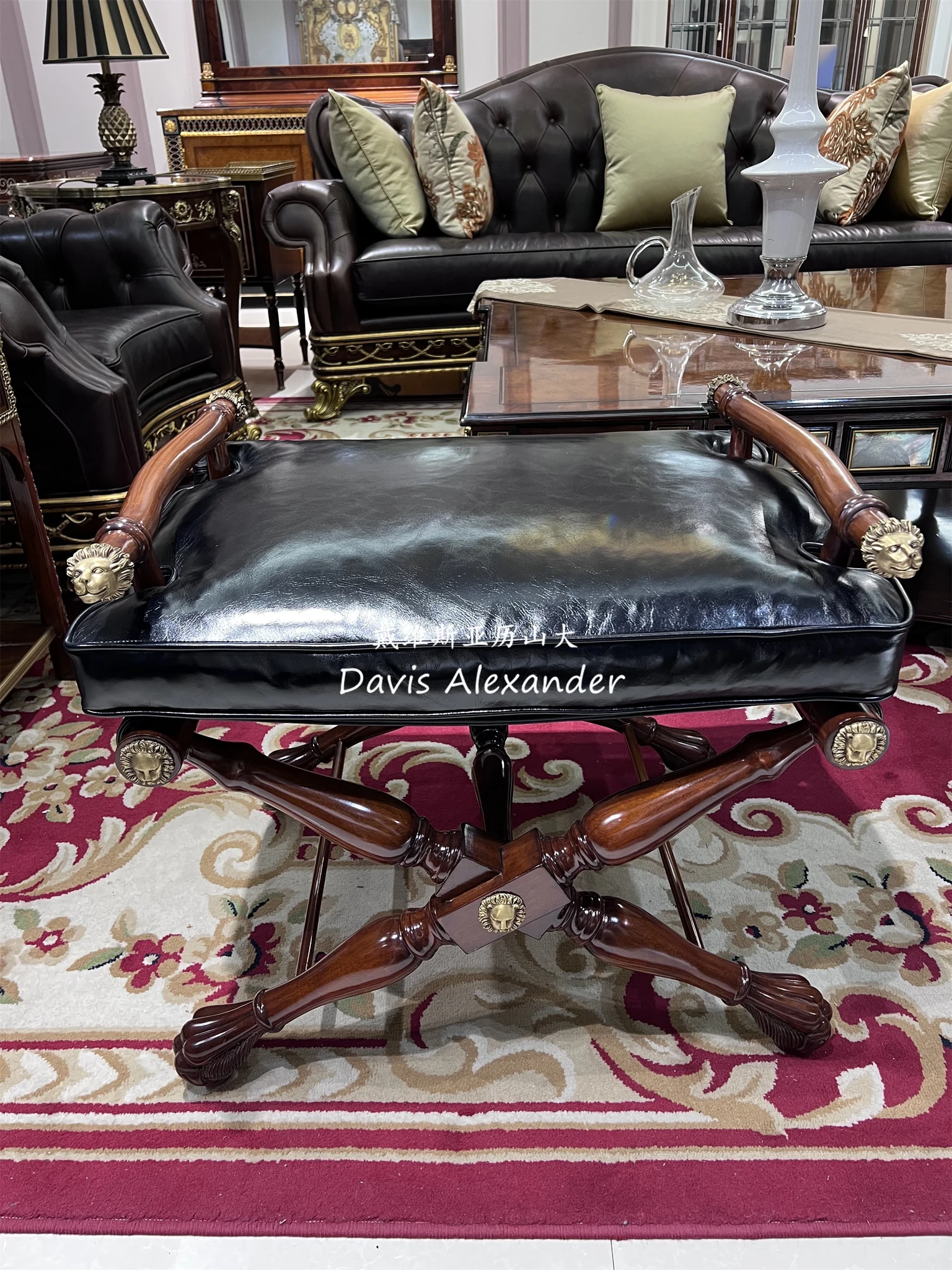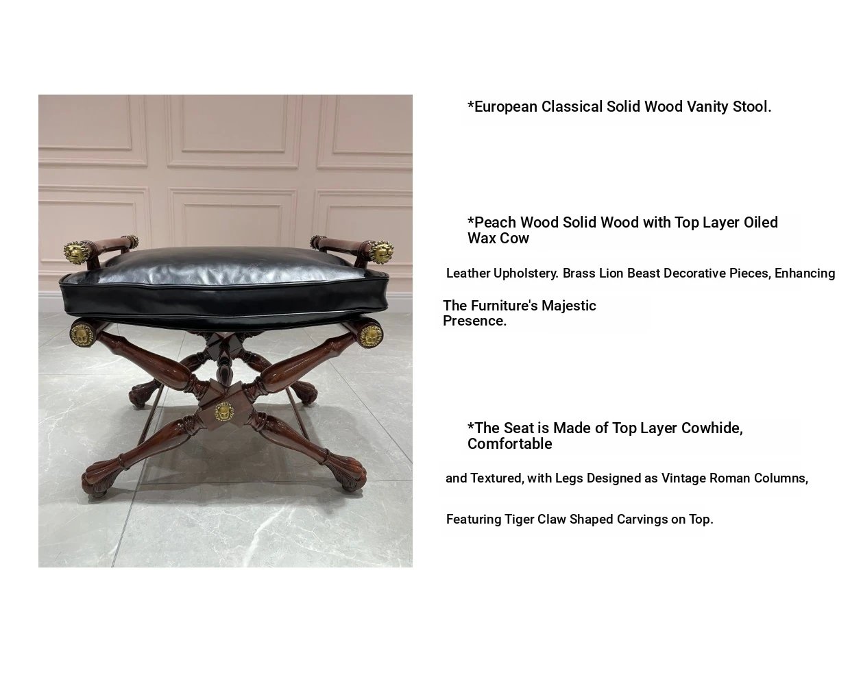 La Casa Alexander Shoe Changing Stool - Elegant European Style Solid Wood Bench for Bedroom - Classic Vanity Stool for American-Style Dressing Rooms