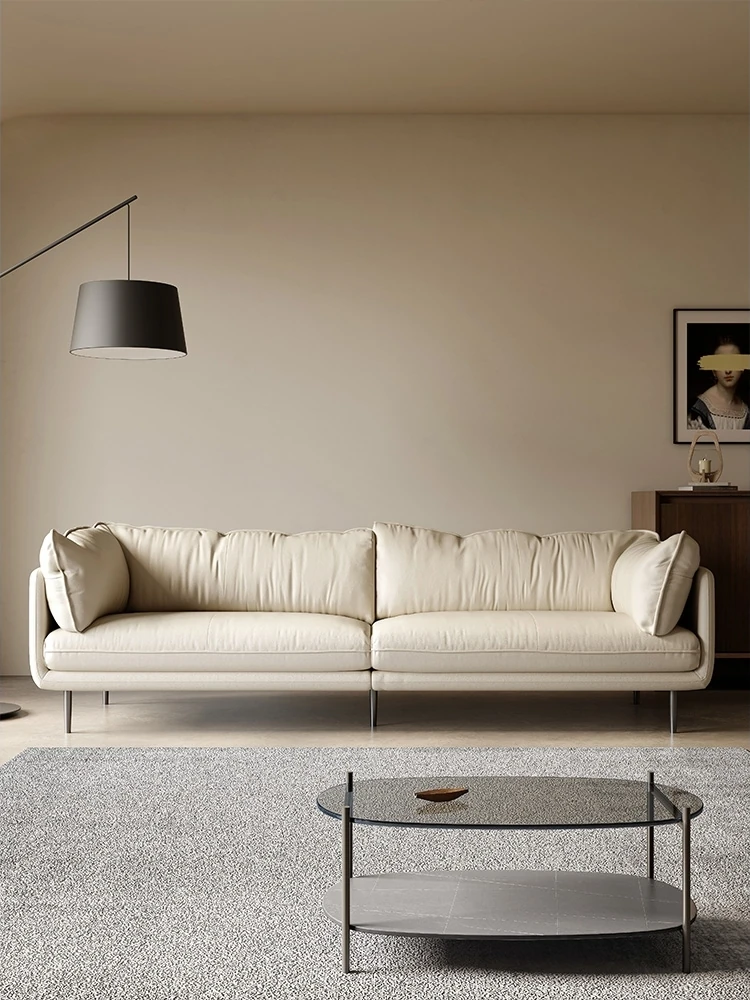 Premium Leather Sofa - Minimalist Modern Design for Small Living Rooms, Featuring Top-Grain Cowhide and Creamy Aesthetic for a Stylish Touch