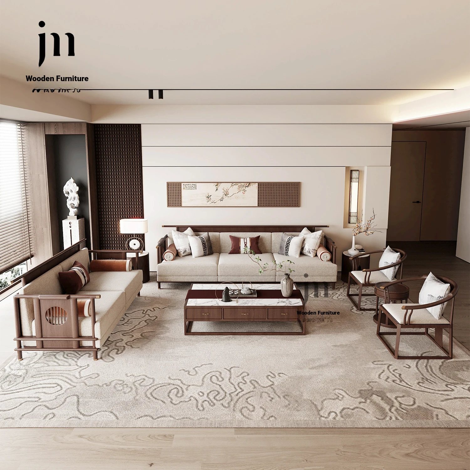 New Chinese Style Solid Wood Sofa Set - Zen-inspired Song Aesthetics with Ash Wood for Modern Minimalist Living Room - 2025 Latest Furniture Collection