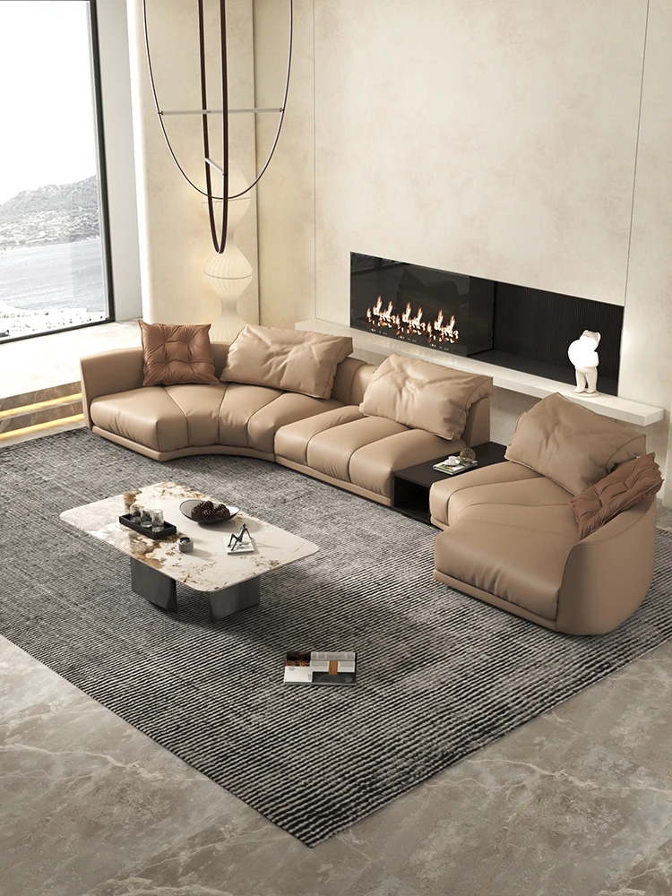 Designer Minimalist Luxury Genuine Leather Sofa for Spacious Living Rooms - 2025 New Curved Corner Sofa with Premium Feel