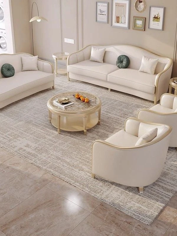 French Solid Wood Luxury Genuine Leather Sofa Set for Small to Medium Living Rooms - Stylish American and European Villa High-End Sofa Combination