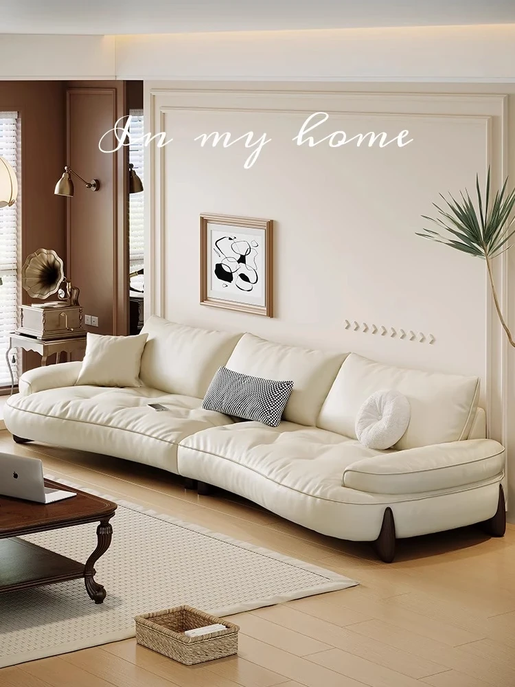 2025 New Minimalist Curved Cream White Leather Sofa - Modern Cozy Marshmallow Design for Small Living Rooms