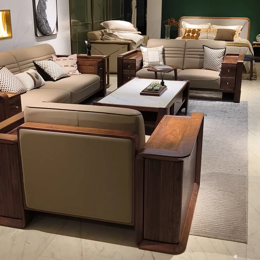 Premium Solid North American Black Walnut Sofa Set - Modern Luxury Living Room Furniture for Spacious Villas and Homes