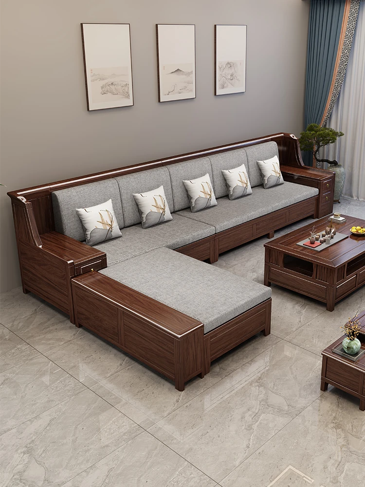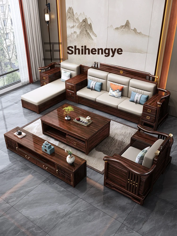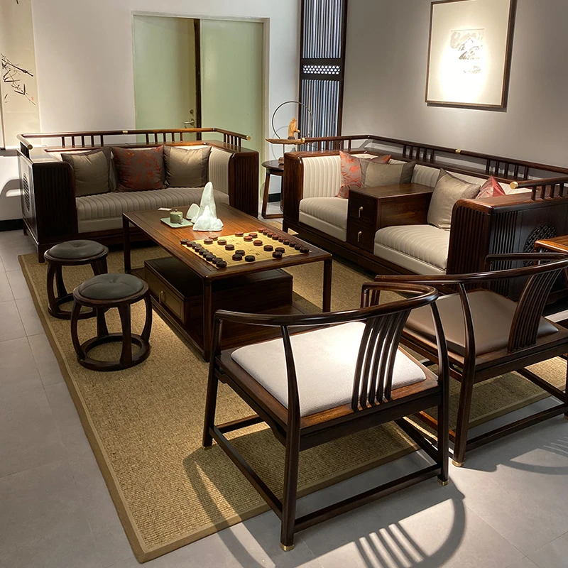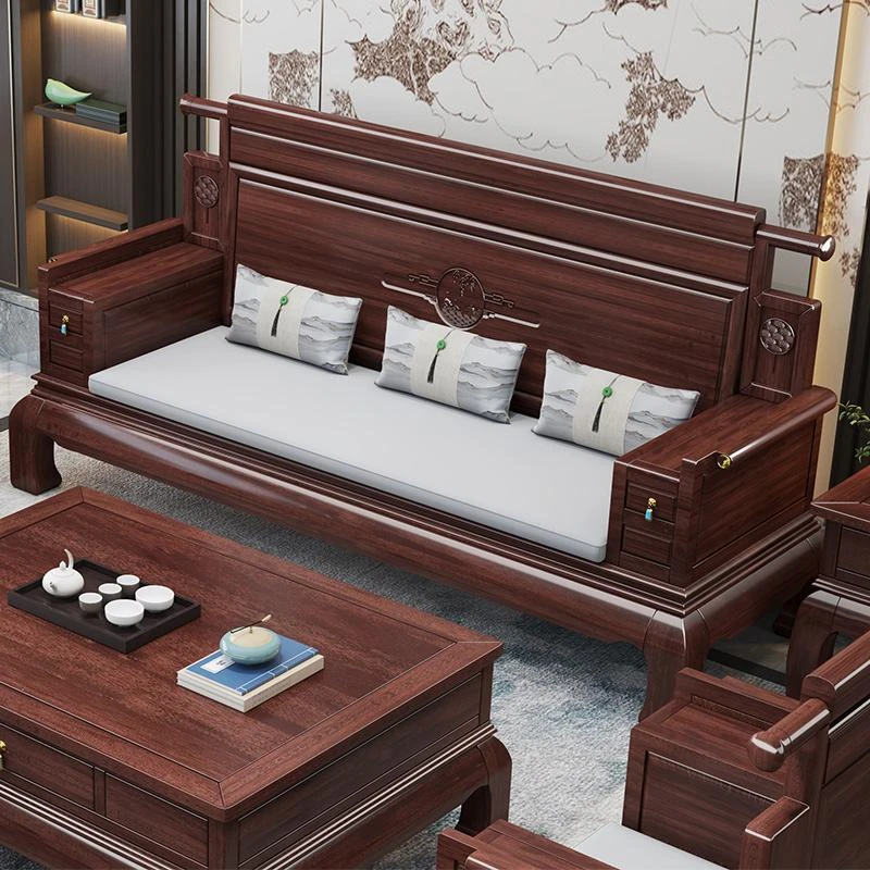Modern Chinese Style Blackwood Solid Wood Sofa Set – Elegant and Minimalist Design for Luxurious Villas and Spacious Living Rooms, Featuring Smart Storage Solutions.