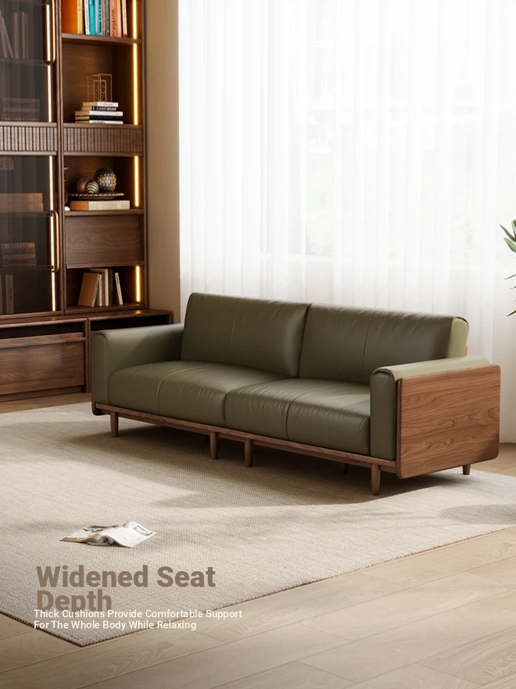 Solid Black Walnut Sofa Set - Genuine Leather, 3-4 Seater, Nordic Italian Design - Perfect for Your Living Room Elegance