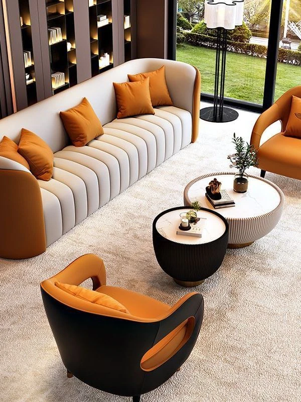 Minimalist Luxury Cat Paw Leather Sofa Set for Living Room - Perfect for Small Spaces and Beauty Salons, Ideal for Relaxation and Meetings