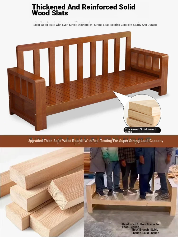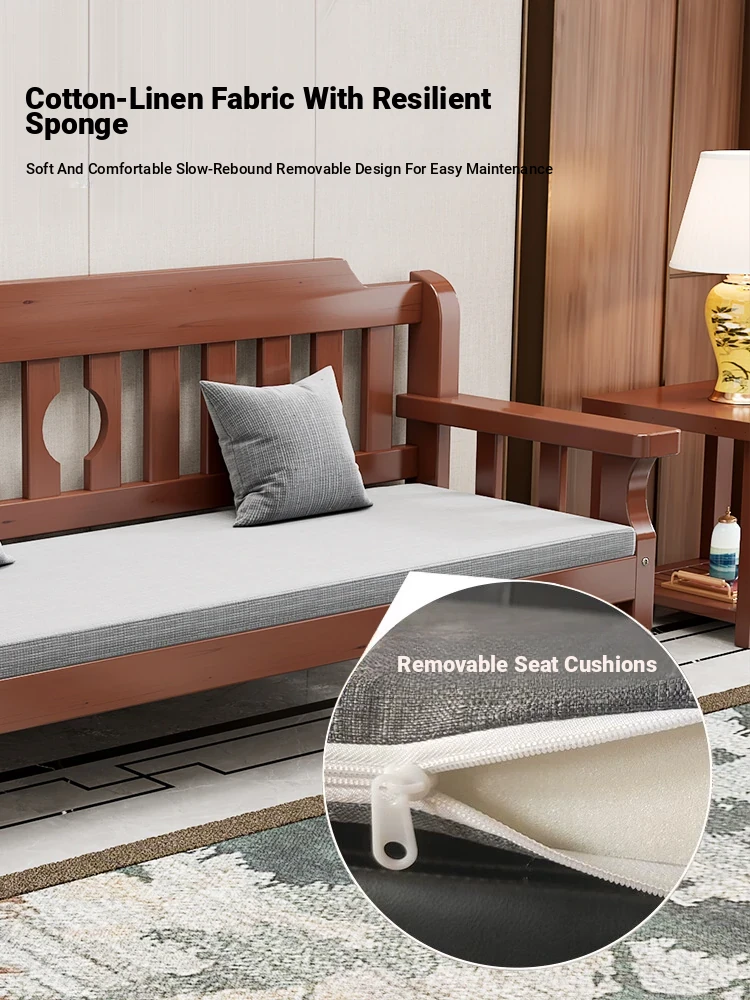 Eco-Friendly Chinese Solid Wood Sofa - Minimalist Design for Multi-Layout Living Rooms, Full Solid Wood with Cushions, Bench Sofa Set