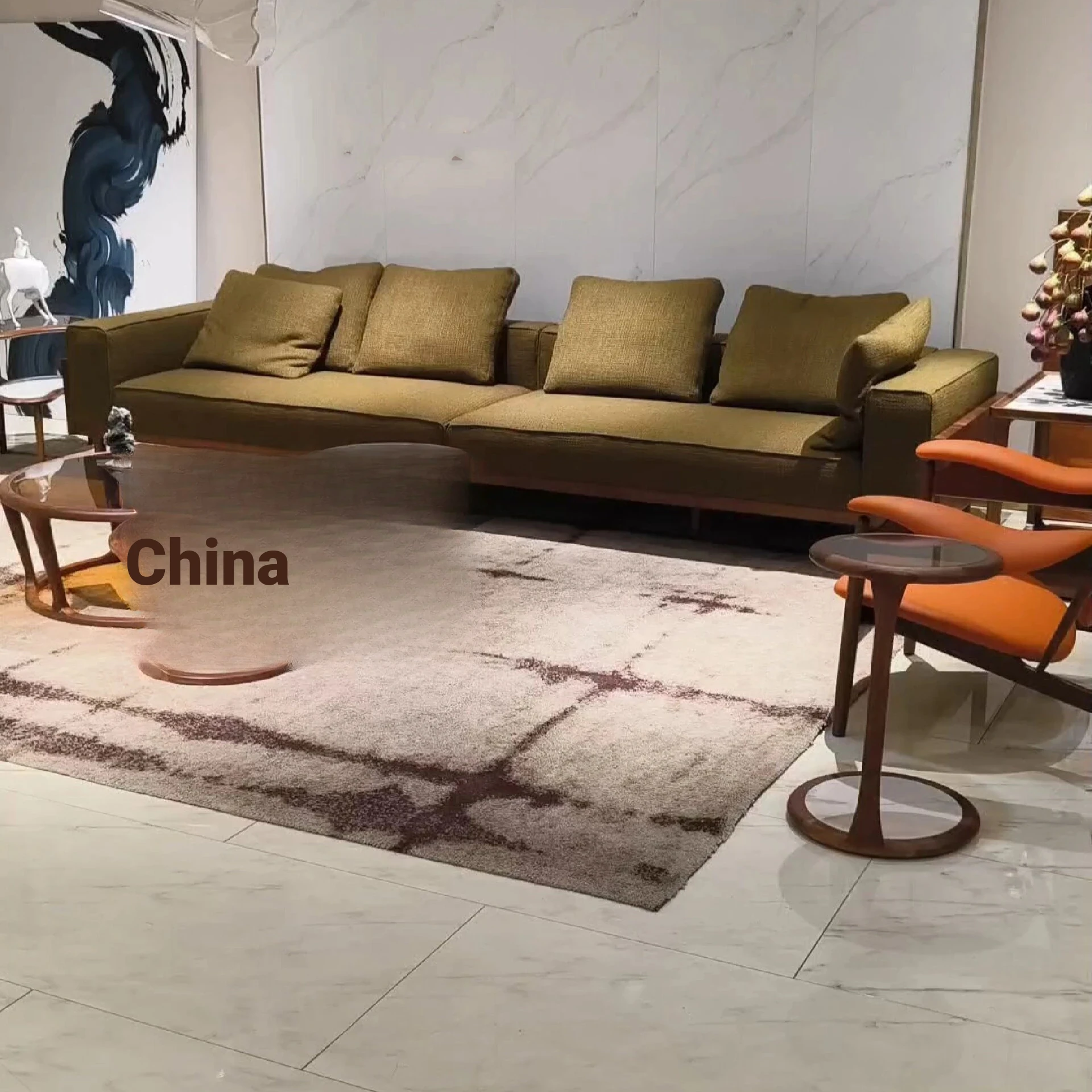 French-style Luxurious Solid Wood Sofa - Minimalist Fabric Three-Seater for Living Room with Rectangular Coffee Table and Side Table - New Collection 2024
