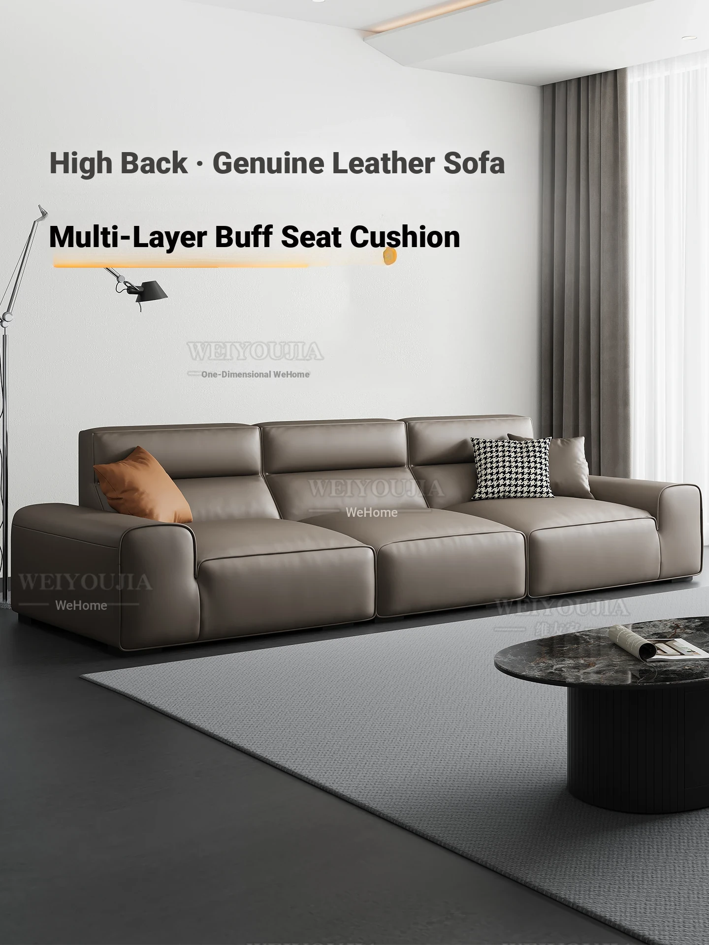 Luxury High-Back Genuine Leather Sofa - Modern Minimalist Design with First-Class Cowhide, Perfect for Your Living Room, Stylish Block Shape for Ultimate Comfort