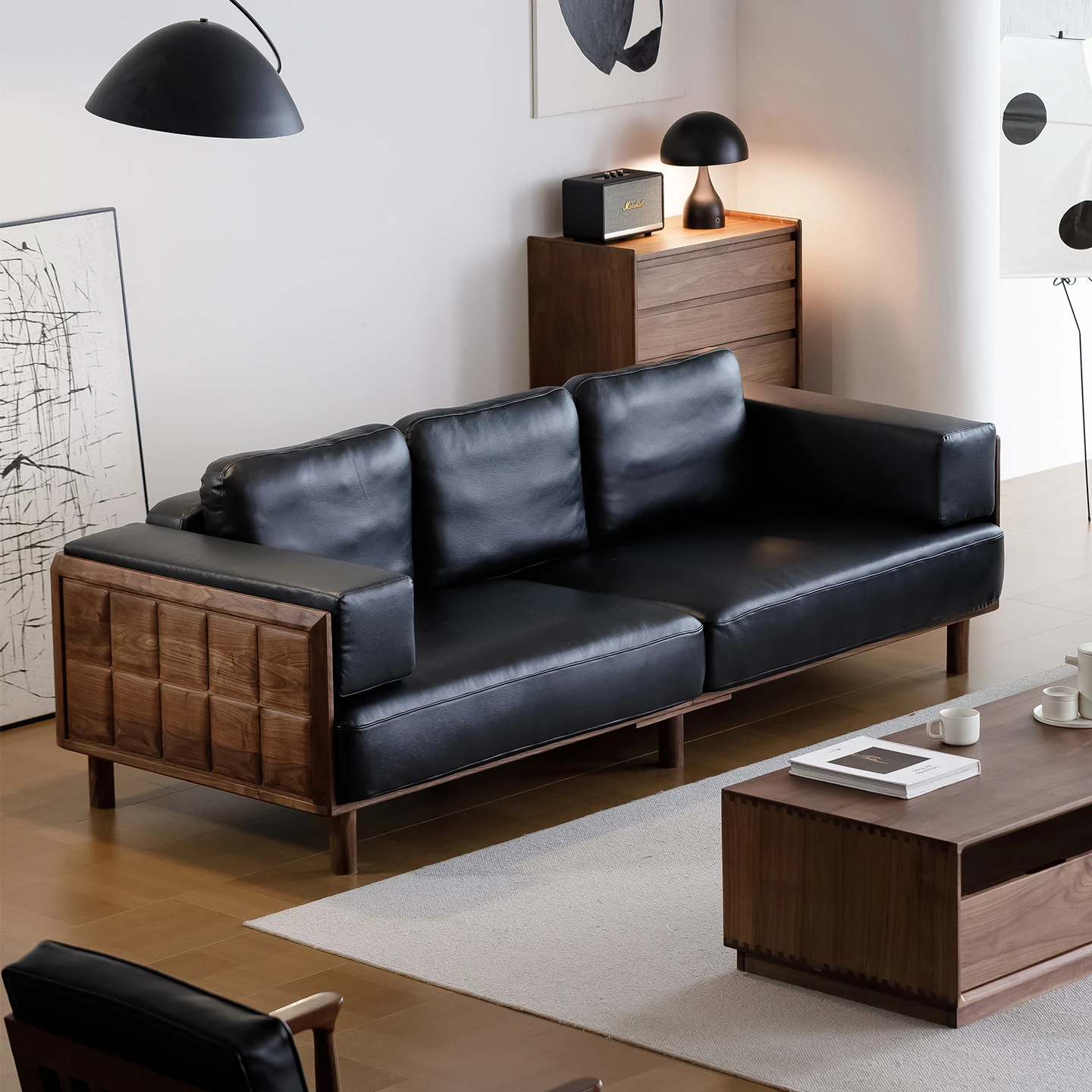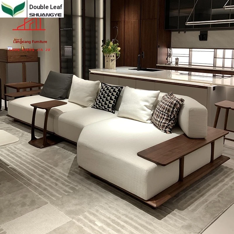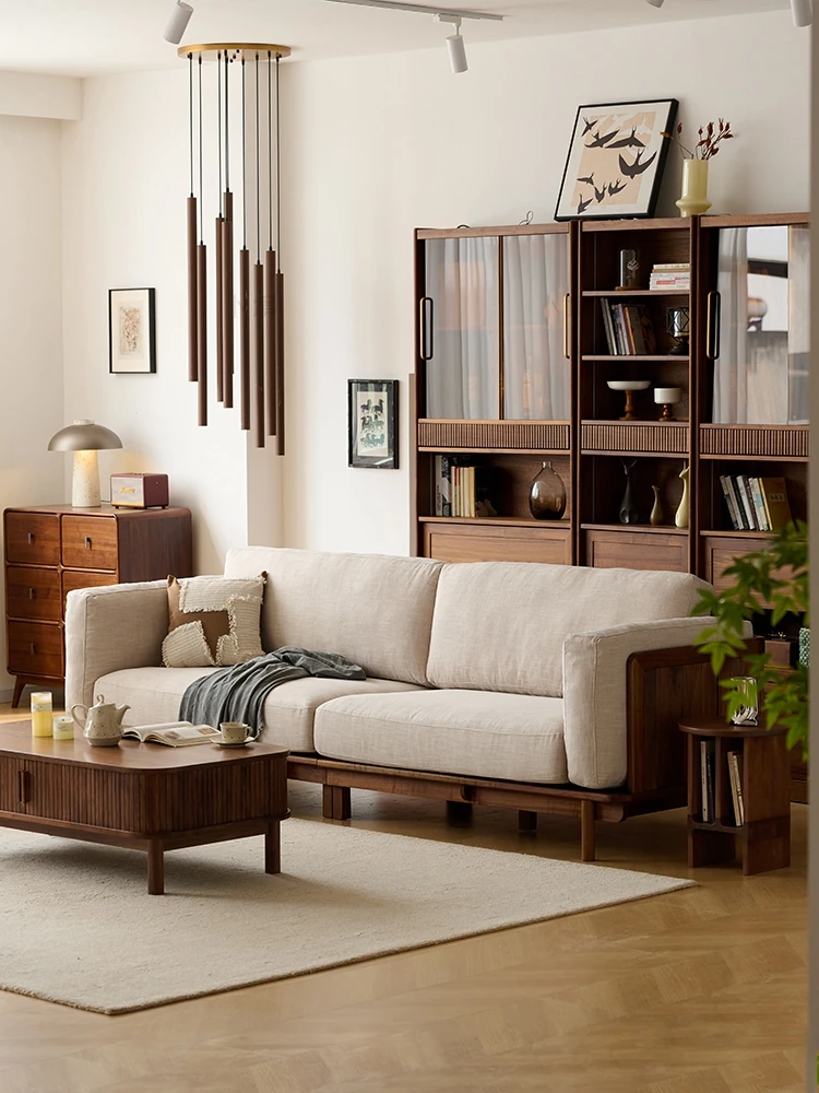 Modern Minimalist North American Black Walnut Fabric Sofa with Solid Wood Frame – Stylish Leather Couch for Small Living Spaces