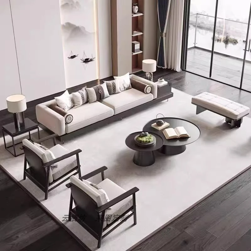Designer New Chinese Style Sofa - Modern Minimalist Light Luxury for Villa Living Room, Zen-Inspired Furniture, Small Space Leather and Solid Wood Sofa