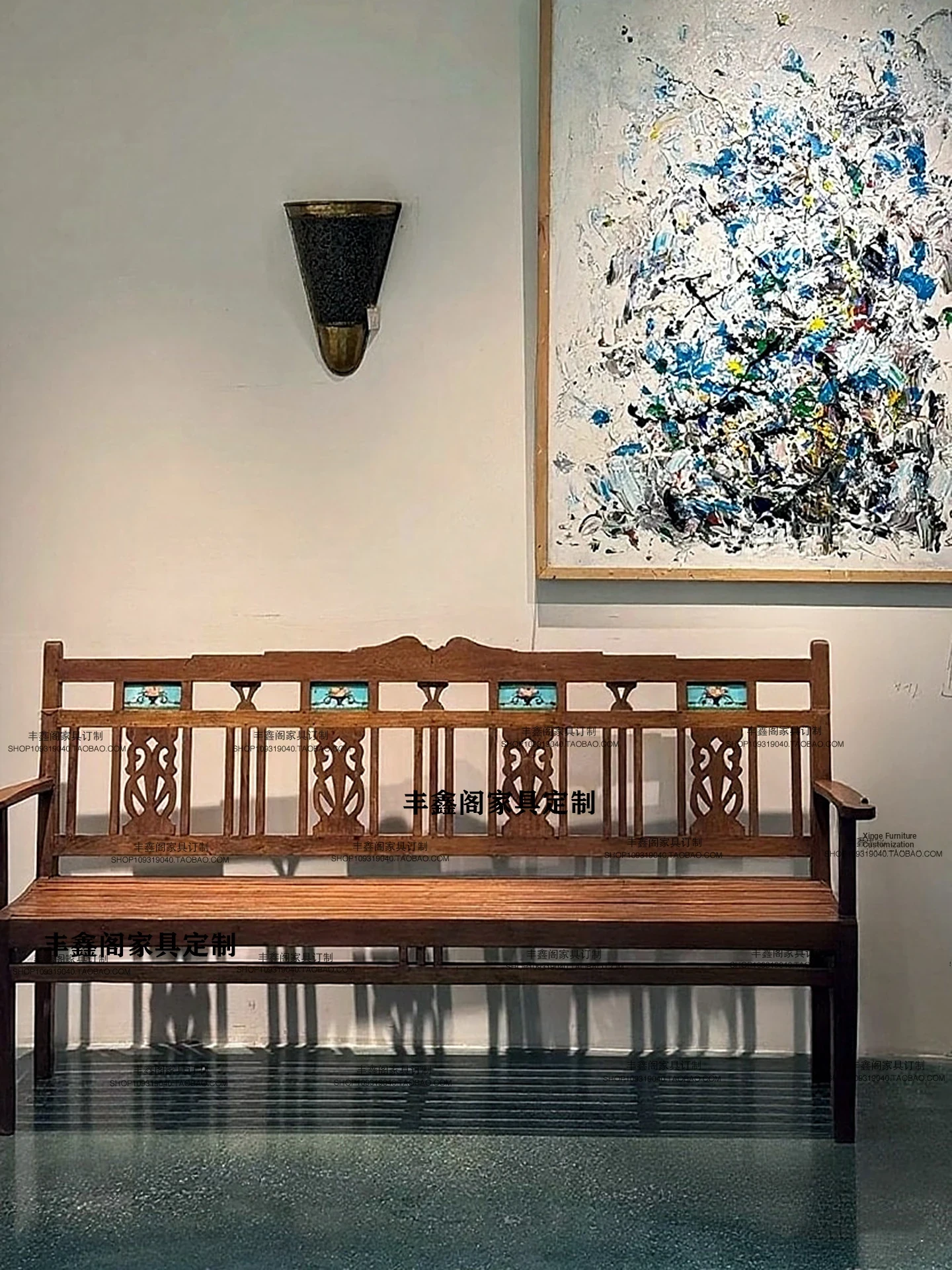 Vintage Solid Wood Carved and Painted Multi-Person Sofa - Retro French Style, Perfect for Restaurants, Inns, and Hotels - Unique Antique Design with a Touch of Republic Era Charm