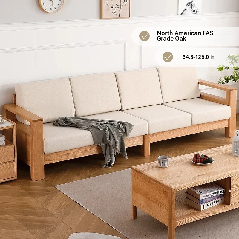 Factory Direct Sale Nordic Solid Wood Four-Person Chaise Lounge Sofa - High-End Oak Corner Sofa Set with Full Solid Wood Upholstery