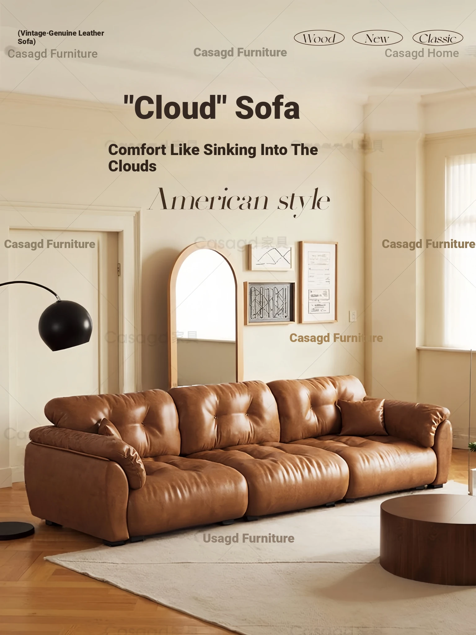 "Casa Vintage Cloud Sofa 2025 - Caramel Color, Oil Wax Leather, Upgraded Movable Backrest, Perfect for Stylish Living Rooms"