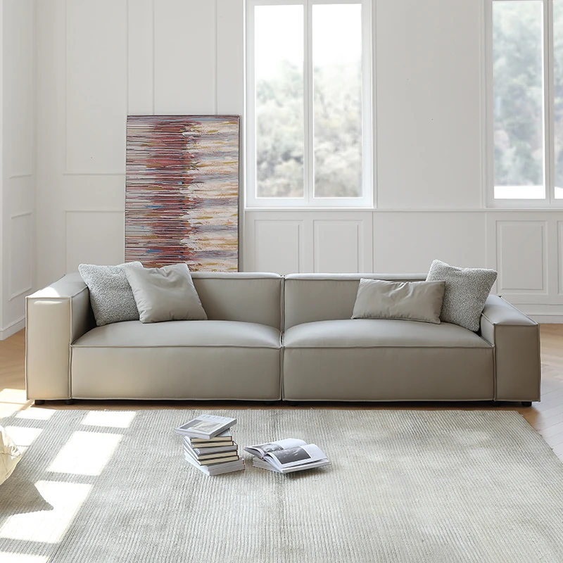 イタリアンミニマリズムシリコンレザーソファ 北欧モダンデザイン 小型住宅に最適なリビング用 本革直線型クォーターブロックソファ - スタイリッシュで快適な空間を演出!