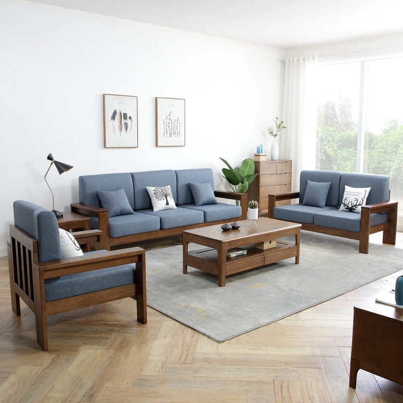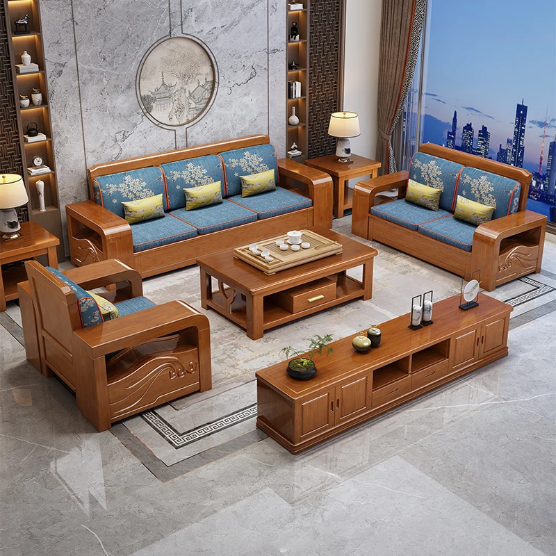 新中式全実木ソファー&テーブルセット|小型リビングに最適!経済的でスタイリッシュなデザイン、心地よいひとときを演出する家具。