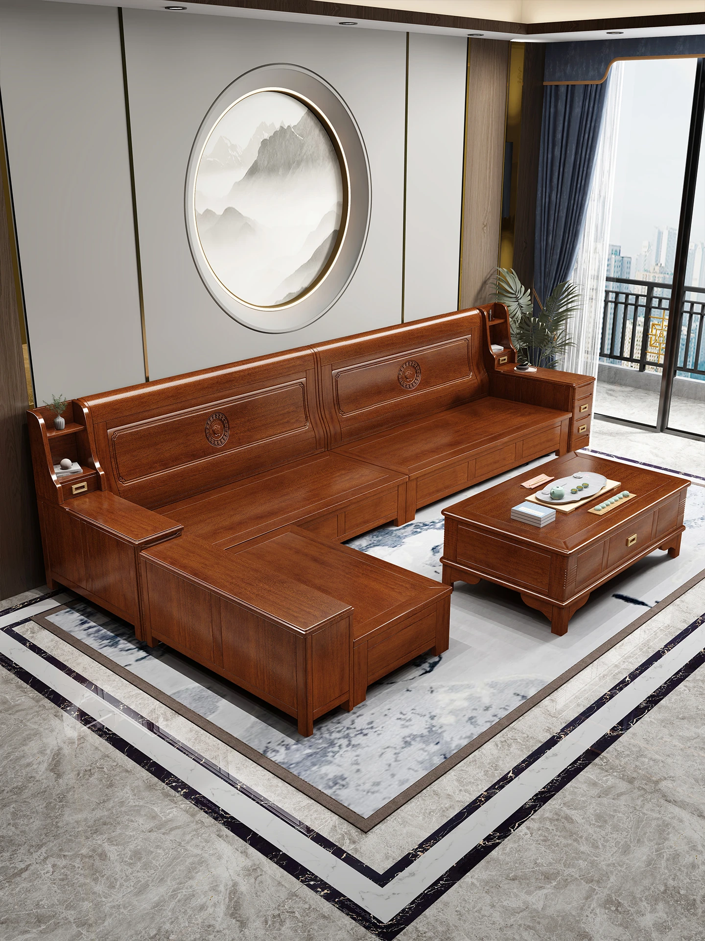 新疆送料無料!全実木の新中式ソファ。冬夏兼用、家族向けに最適!様々なサイズのリビングにぴったりな収納付きコンビネーション。快適な空間を演出します!