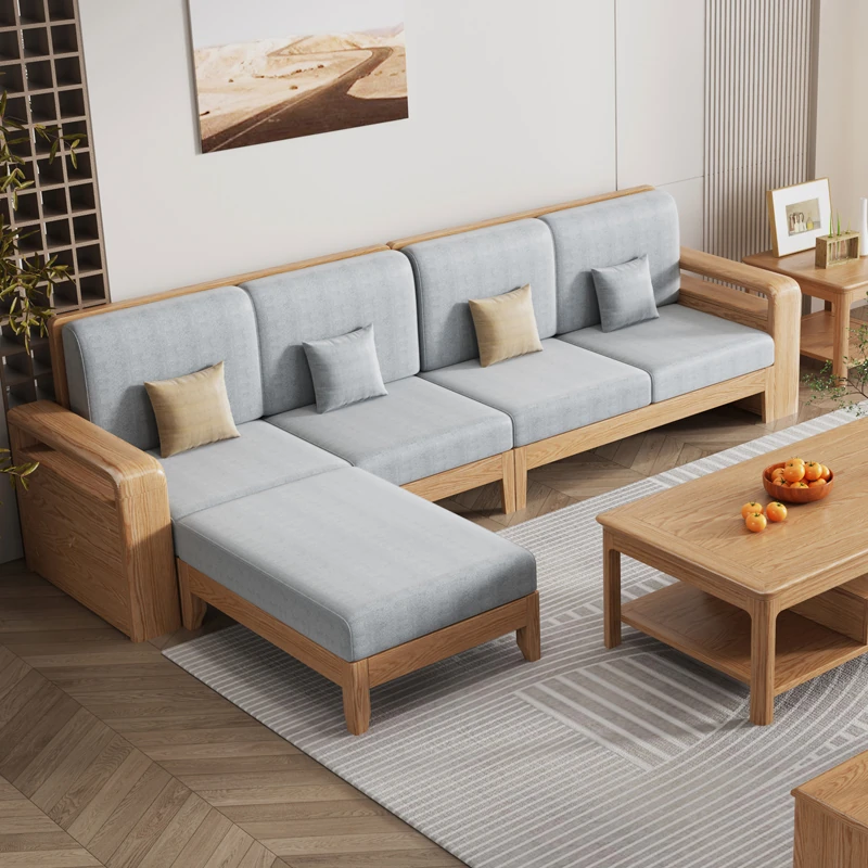 新中式高級実木ソファセット - モダンな別荘にぴったりの大サイズ!ホワイトアッシュ材使用、心地よい禅の雰囲気を演出するラグジュアリーなリビングルームソファ。