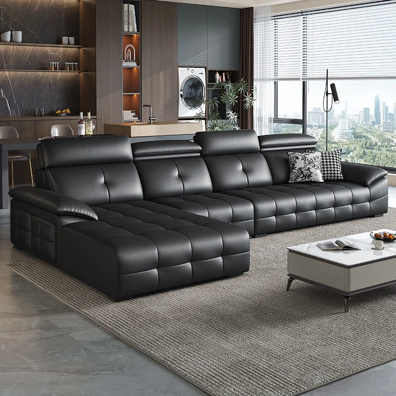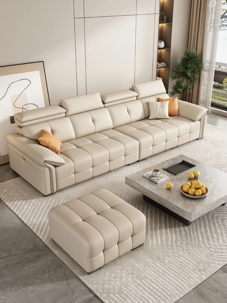 2025年新款!軽奢モダン本革ソファー - 高級感溢れる一級牛皮使用、大型ヴィラ向けのシンプルなリビングルーム用コンビネーションソファ。おしゃれで快適な空間を演出します!