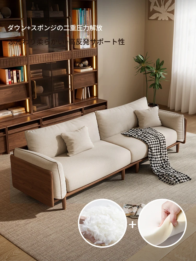 2025年新作!高級ナチュラルウォールナットの新中式ソファ - シンプルでスタイリッシュな布製と無垢材のコンビネーション、小型リビングに最適です!