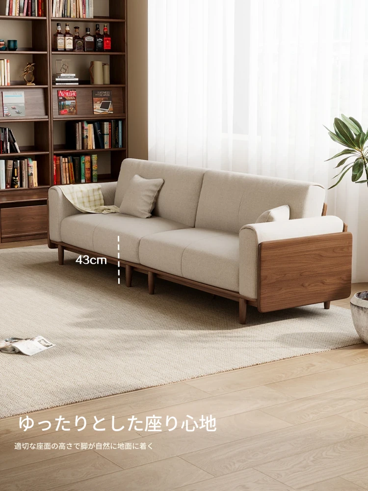 北米産ブラックウォールナット無垢材ソファー - 小型リビングにぴったりの直線デザイン、洗えるファブリック、北欧のレトロスタイル家具でおしゃれな空間を演出!