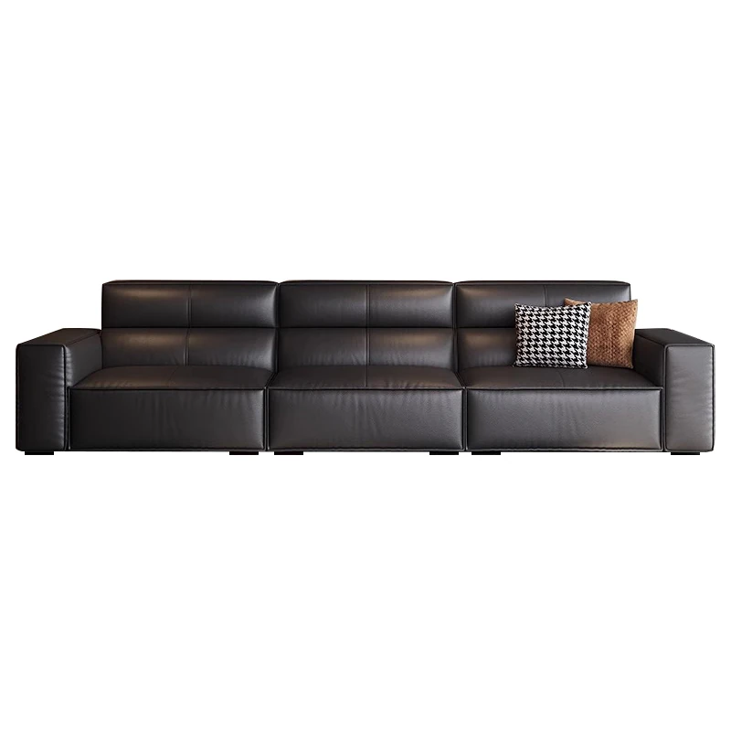 イタリアンミニマルデザインの本革ソファセット - ラグジュアリーなリビングに最適!小型住居にもぴったりなモダンでシンプルな直列デザインのウッドフレームソファ。心地よい座り心地で、生活空間を格上げします!