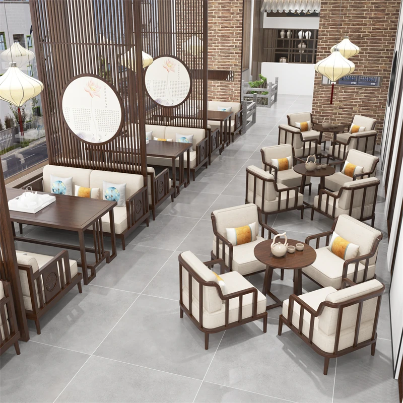 Modern Minimalist Solid Wood Furniture Set for New Chinese Tea House - 3-Piece Sofa Combo for Hotel Lounges and Private Tea Rooms