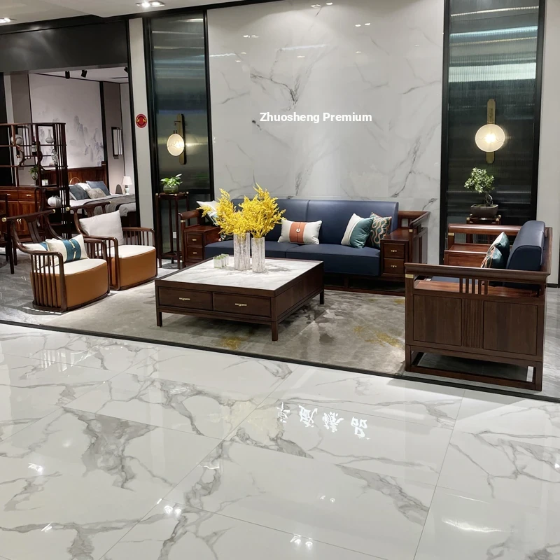 Designer New Chinese Style Solid Wood Sofa Set - Modern Minimalist Luxury for Hotels and Villas, Perfect for Small Living Rooms