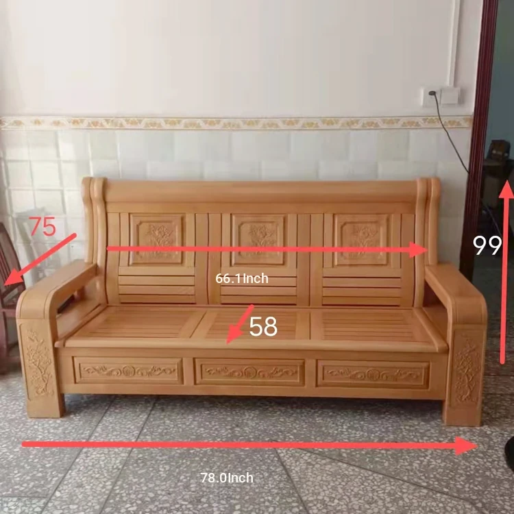 Elegant German Beech Wood Modern Chinese Sofa Set for 3, 4, 5, or 6 with Carved Details and Storage Ottoman - Perfect for Stylish Living Spaces!