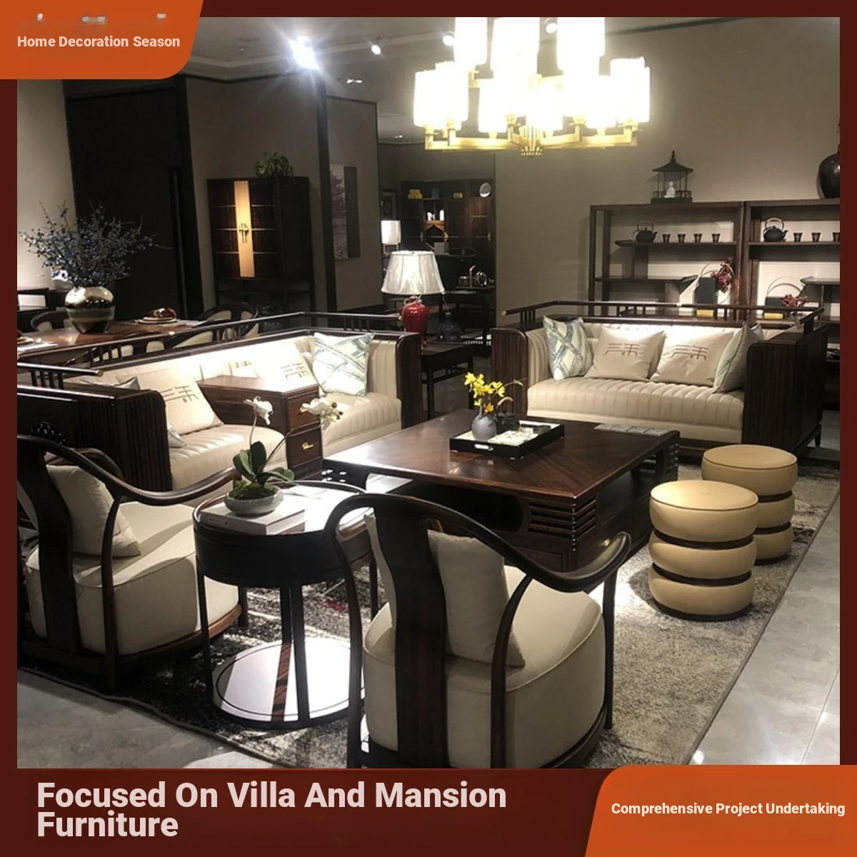 "Wangshan New Chinese Style Solid Wood Sofa - Modern Minimalist Zen Luxury for High-End Villas and Spacious Living Rooms"