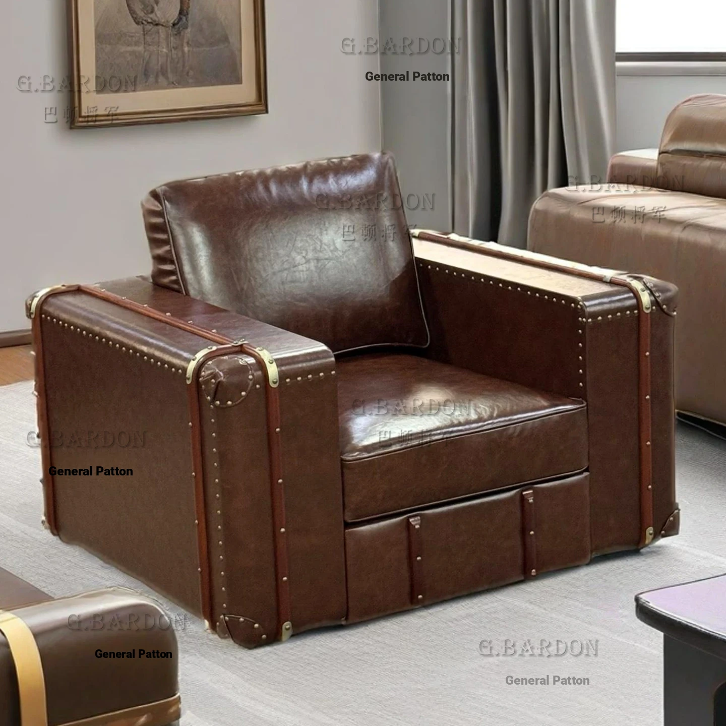 American Vintage Rattan Leather Sofa - Perfect for Whiskey, Cigars, and Relaxation in Living Rooms, Hotels, Lounges, and KTVs - Stylish and Comfortable Seating Solution