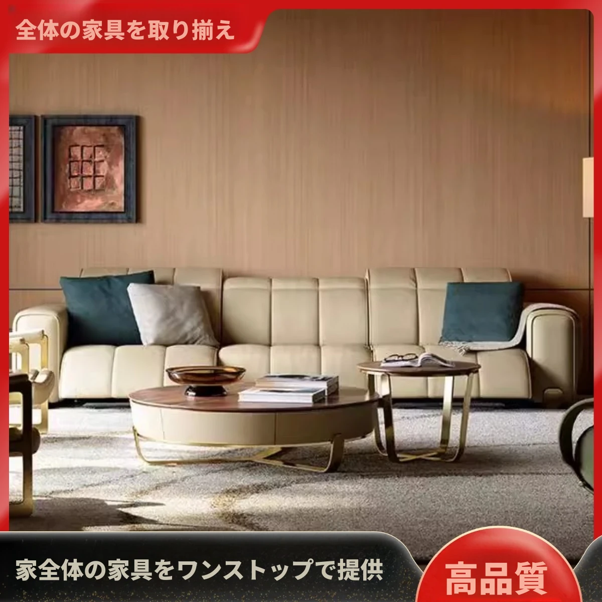 ウコンウッドソファ 欧風本革 高級感あふれる実木彫刻 ヴィラ向け大サイズ リビングルーム豪邸家具セット 財運を呼ぶデザイン