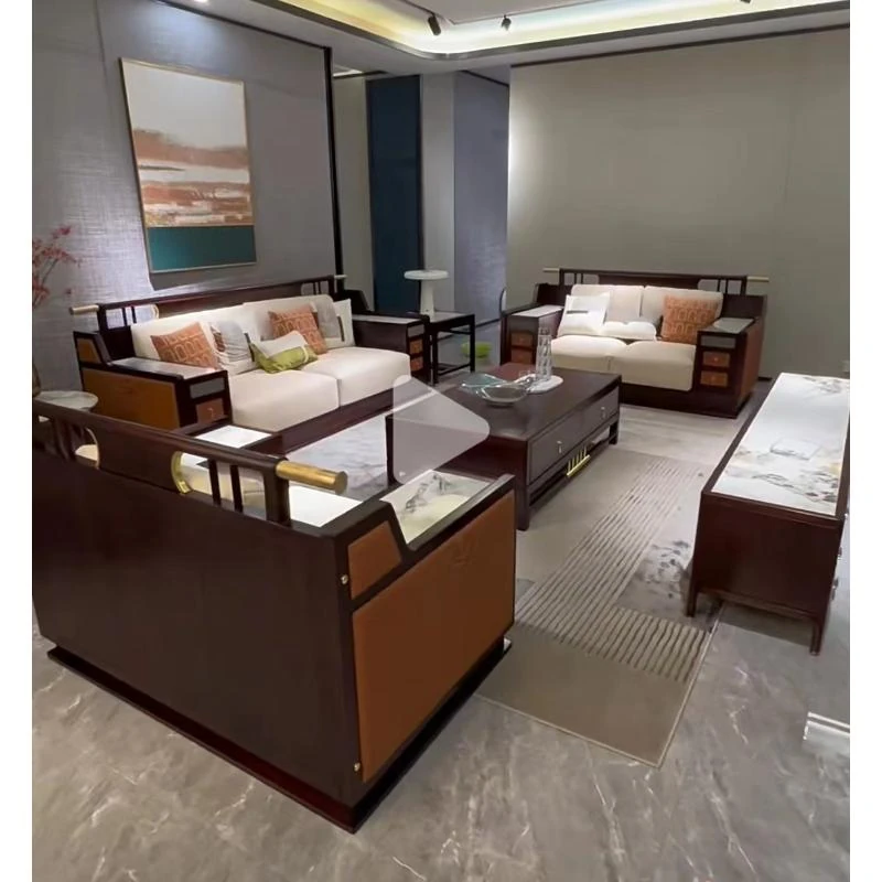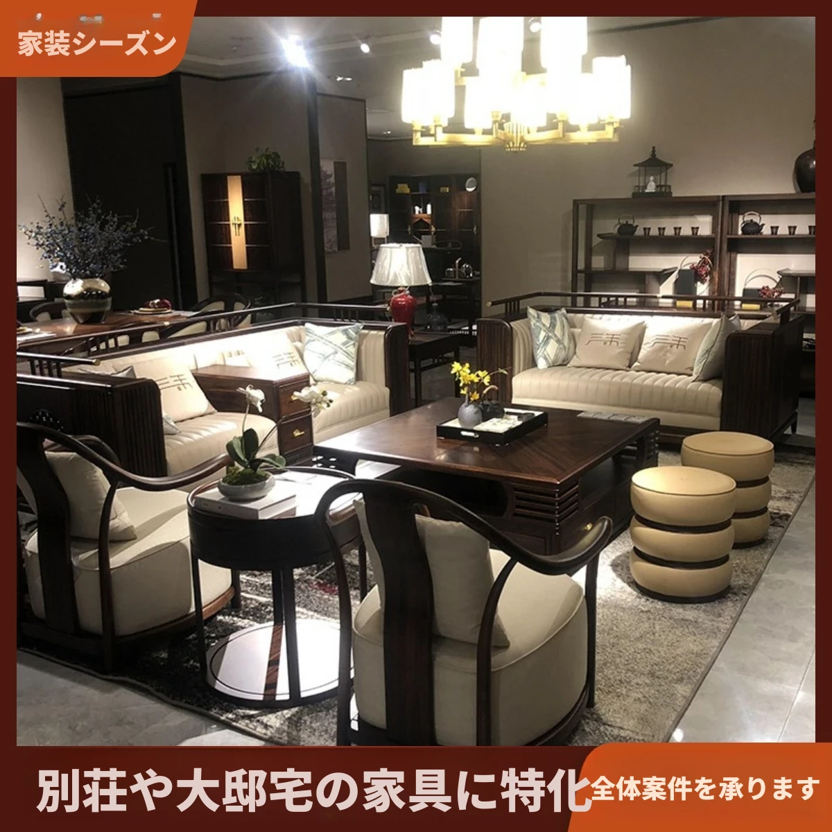 高級感溢れる新中式ウーキン木製フルソファセット - 家庭用リビングルーム、別荘、大型住宅に最適なモダンで軽やかなラグジュアリー家具。