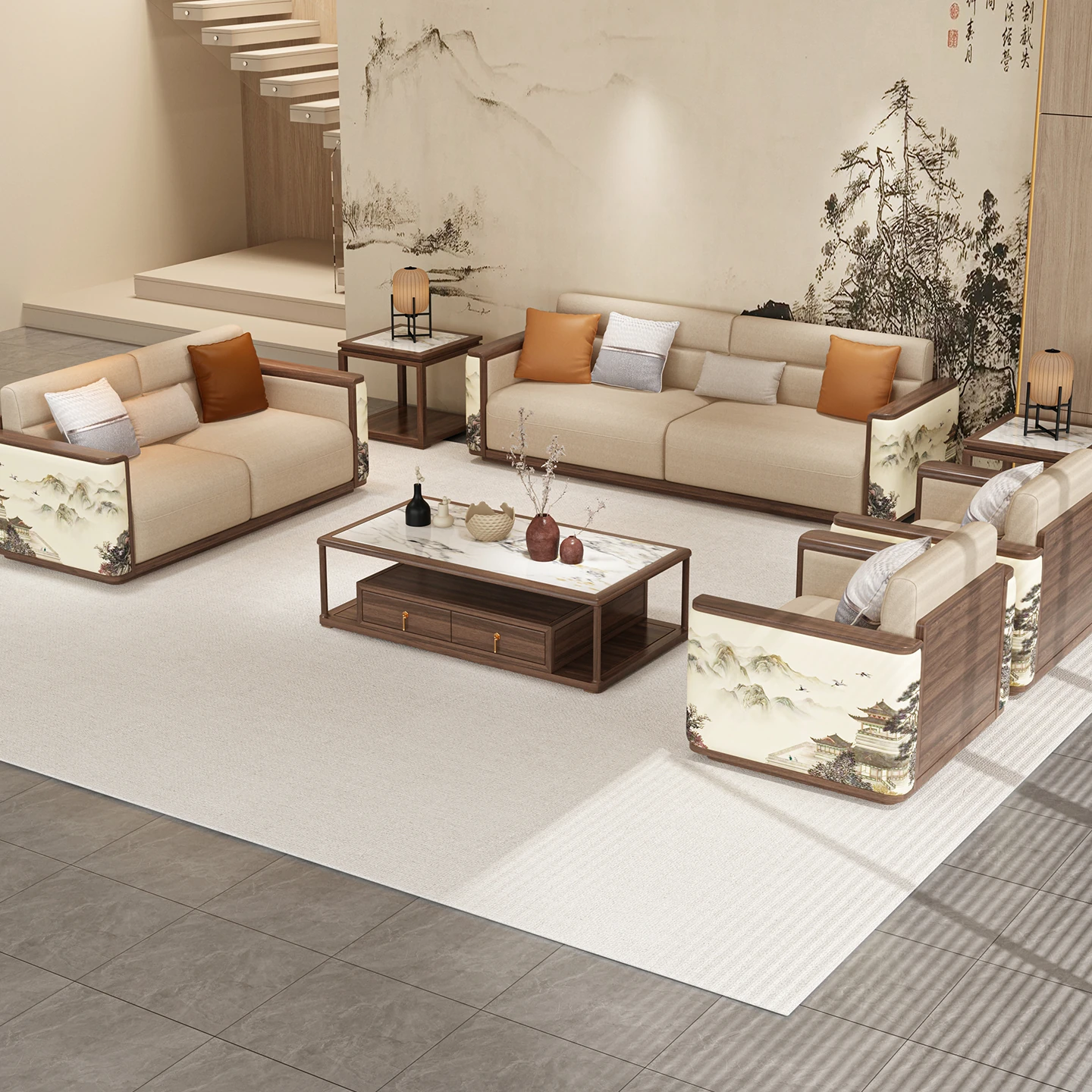 【望山】新中式高級実木ソファ - モダンでシンプルな禅の美学を取り入れた、ラグジュアリーな別荘用リビング家具。大空間にもぴったりな洗練されたデザインで、心地よいひとときを演出します。