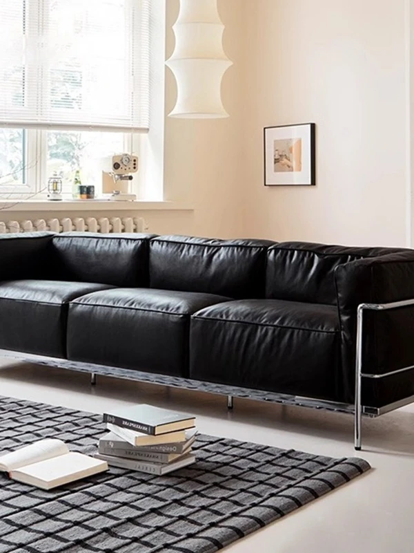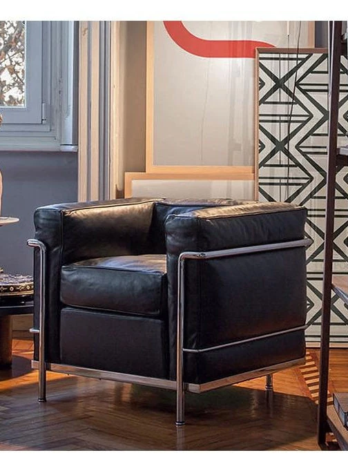ル・コルビジェ LC2 一人用ソファ デザイナーズヴィンテージ 本革 牛皮 ステンレス製 インスタ映えソファチェア - エレガントなデザインで、居心地の良い空間を演出します!