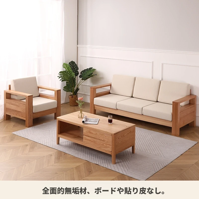 北欧風 全実木製 3人掛け・2人掛け・1人掛けソファ 雲のような心地よさ 橡木素材のシンプルな組み合わせ家具 大人気のデザイン!