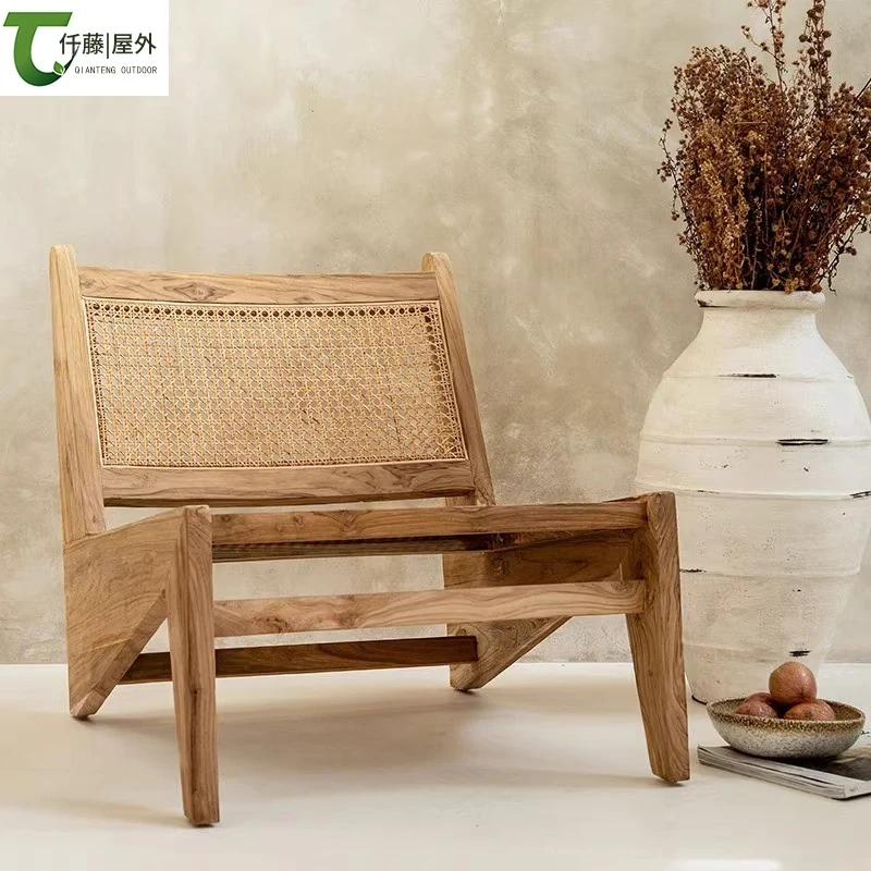 アウトドアレジャーソファー バルコニー用ラタンチェア シングルサイズ ティークウッド製 民宿・ホテル向け 防水・屋外用 ガーデンラタン家具で、快適なひとときをお楽しみください!
