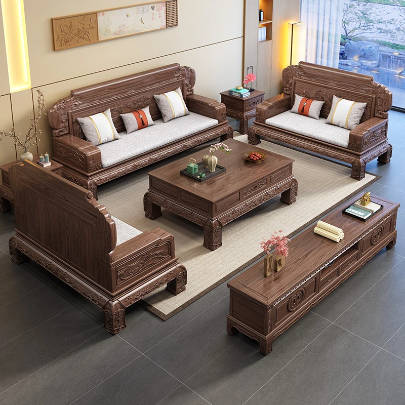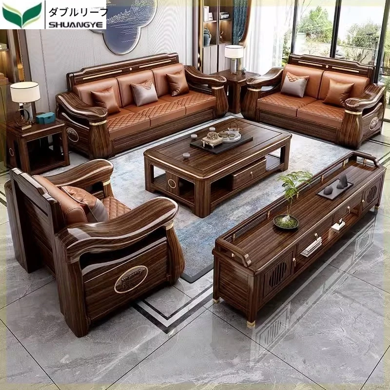 新中式ウルジン材の無垢材ソファセット - モダンでシンプル、大小様々な住宅や別荘にぴったりのクラシックな木製家具。おしゃれで快適なリビング空間を実現します!