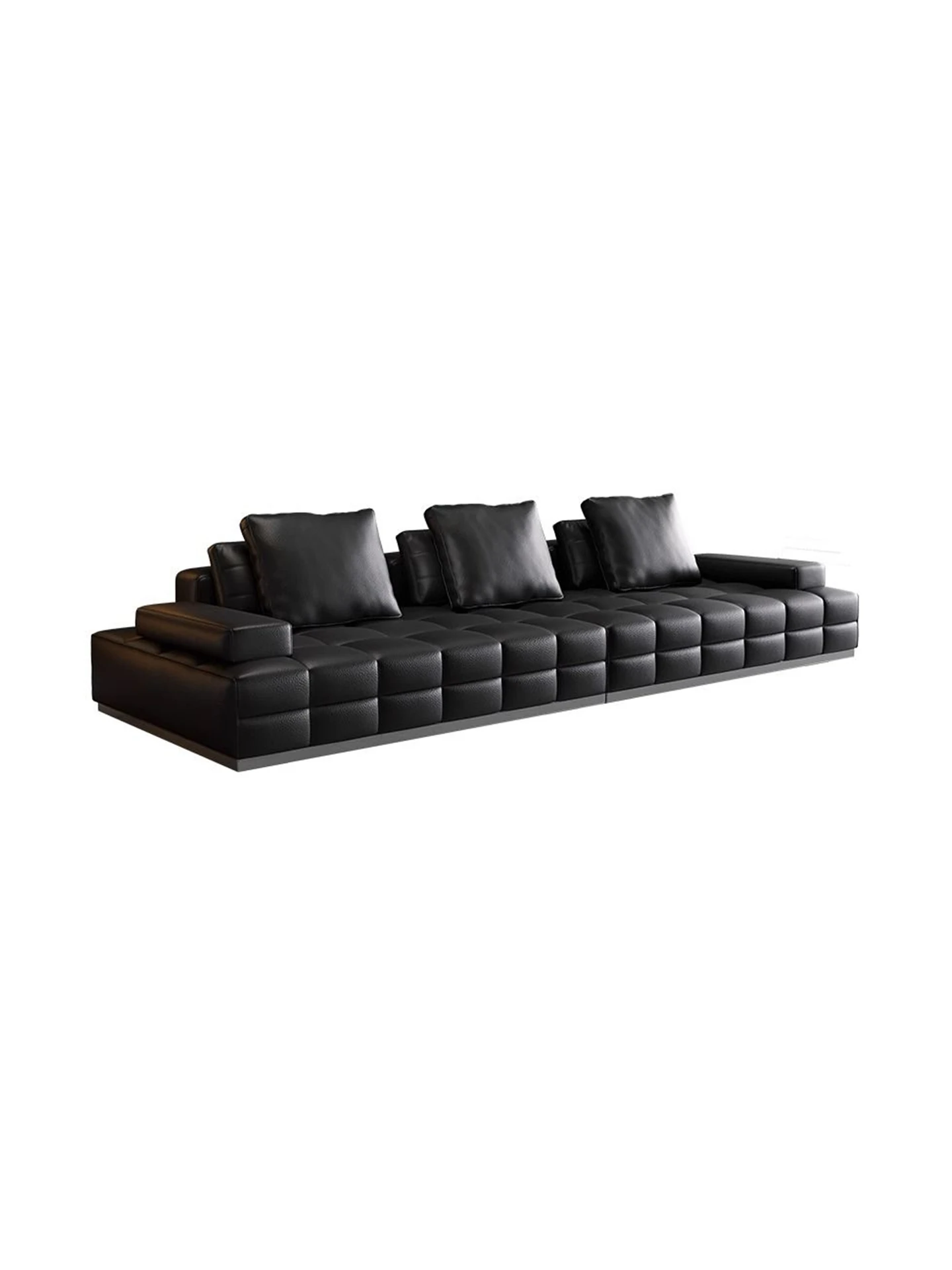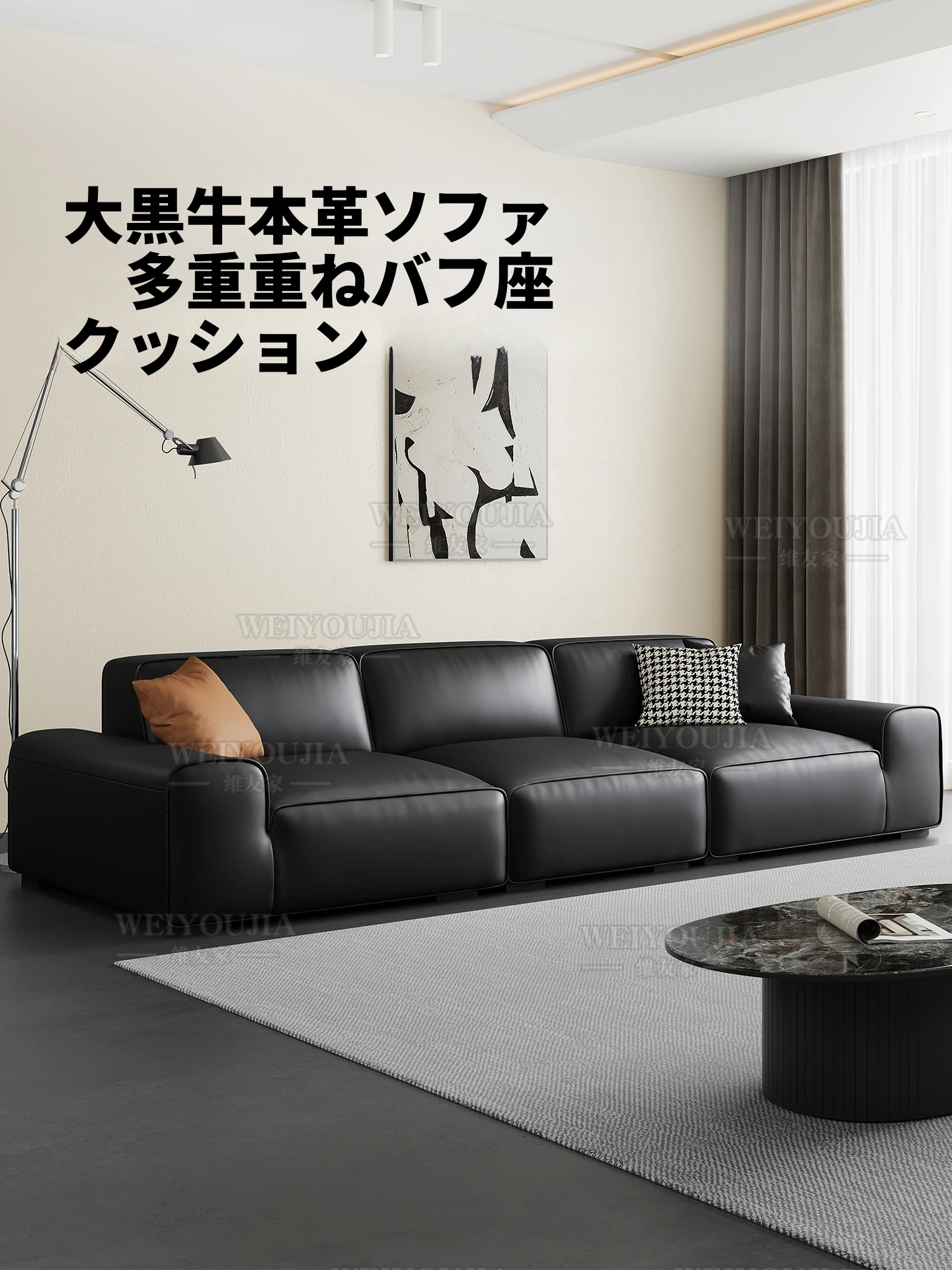 大黒牛本革ソファー - 高級レザー使用のイタリアンミニマリズム、現代的な直線デザインのブラック豆腐ブロックソファーで、あなたのリビングルームをスタイリッシュに演出します!