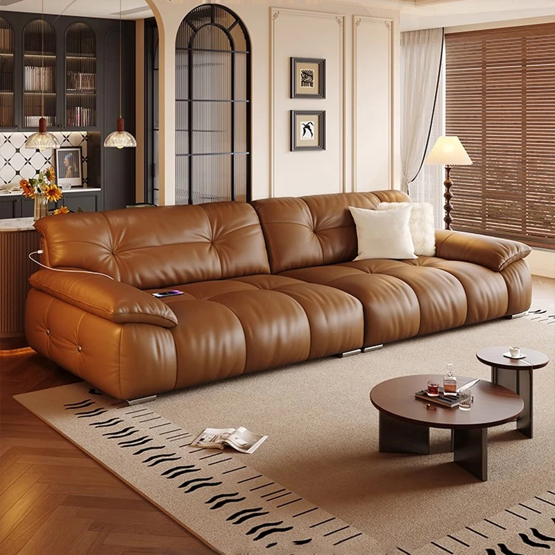 本革ソファ クラウドレトロスタイル リビングルーム用 プレミアム牛革 イタリアンデザイン 大型深座り 2025年新作 パパBear クッション性抜群で、極上のくつろぎを提供します!