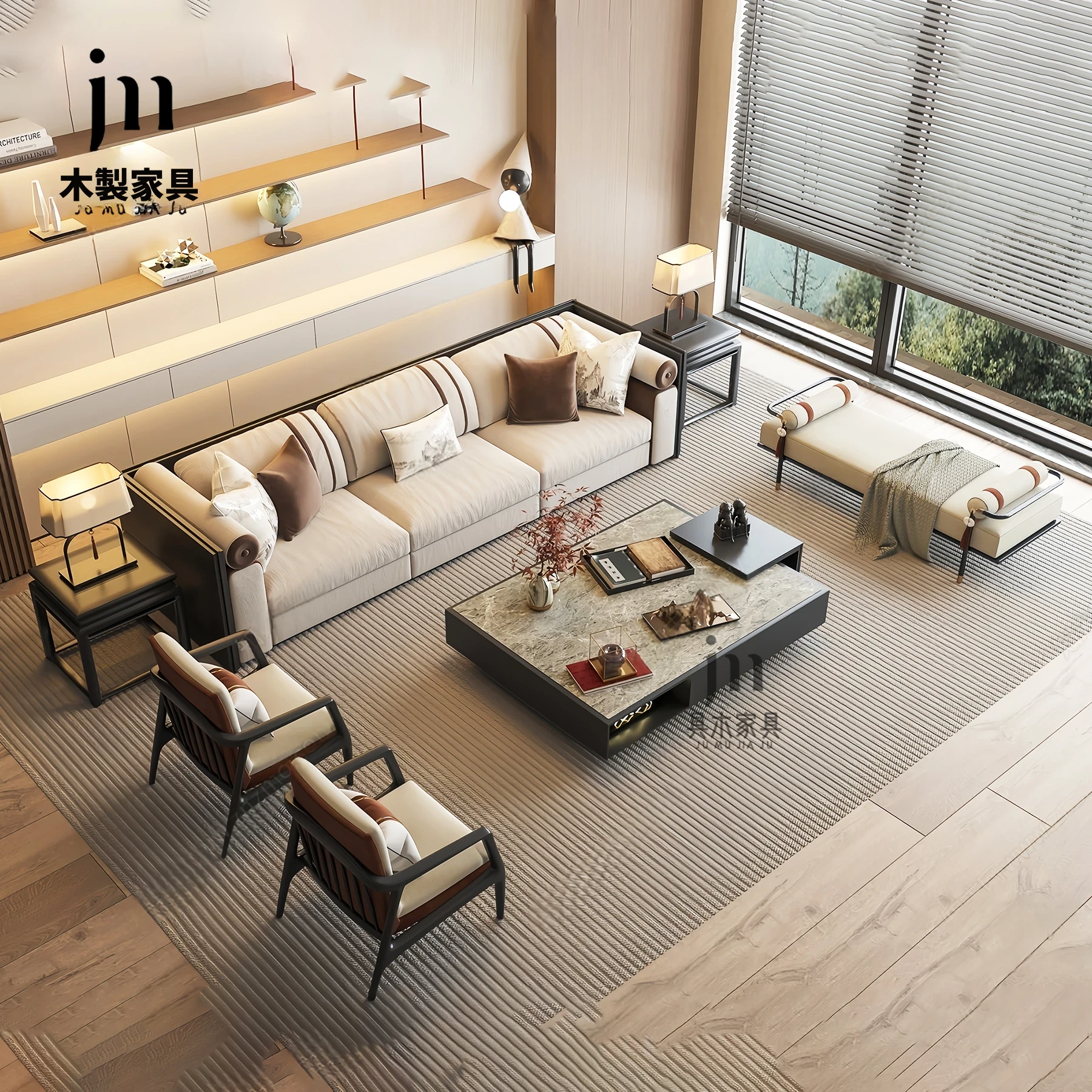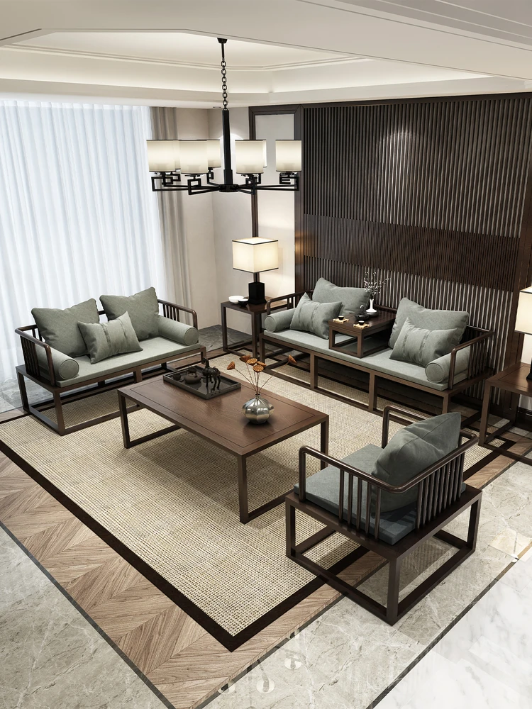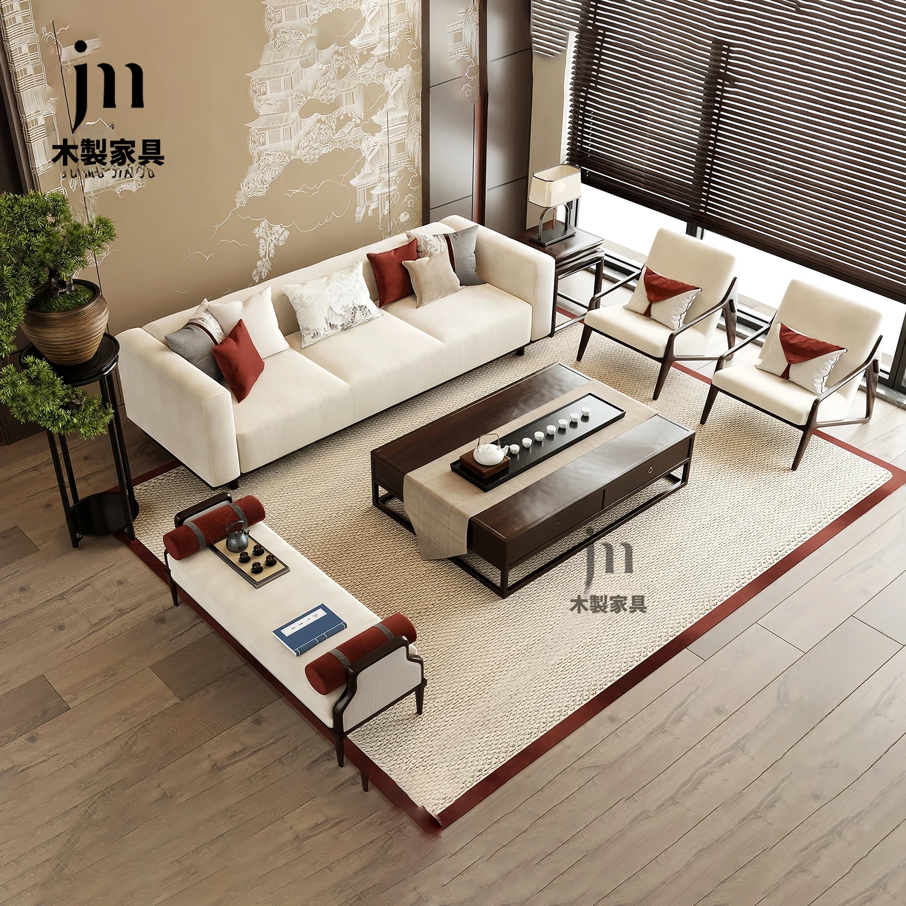 新中式の無垢材ソファセット - モダンでシンプル、中古風の軽やかなラグジュアリー。別荘やホテルに最適な禅の雰囲気を醸し出す客リビング家具。心を癒す空間を演出します。