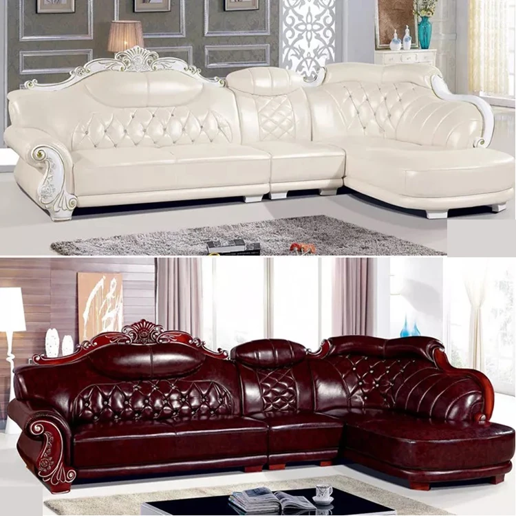 欧風本革ソファー 高級感あふれる無垢材彫刻仕上げ!本牛革使用のシンプルなデザインで、大小様々なリビングに最適なアメリカンスタイルのコーナーコンビネーション。あなたの空間を贅沢に演出します!