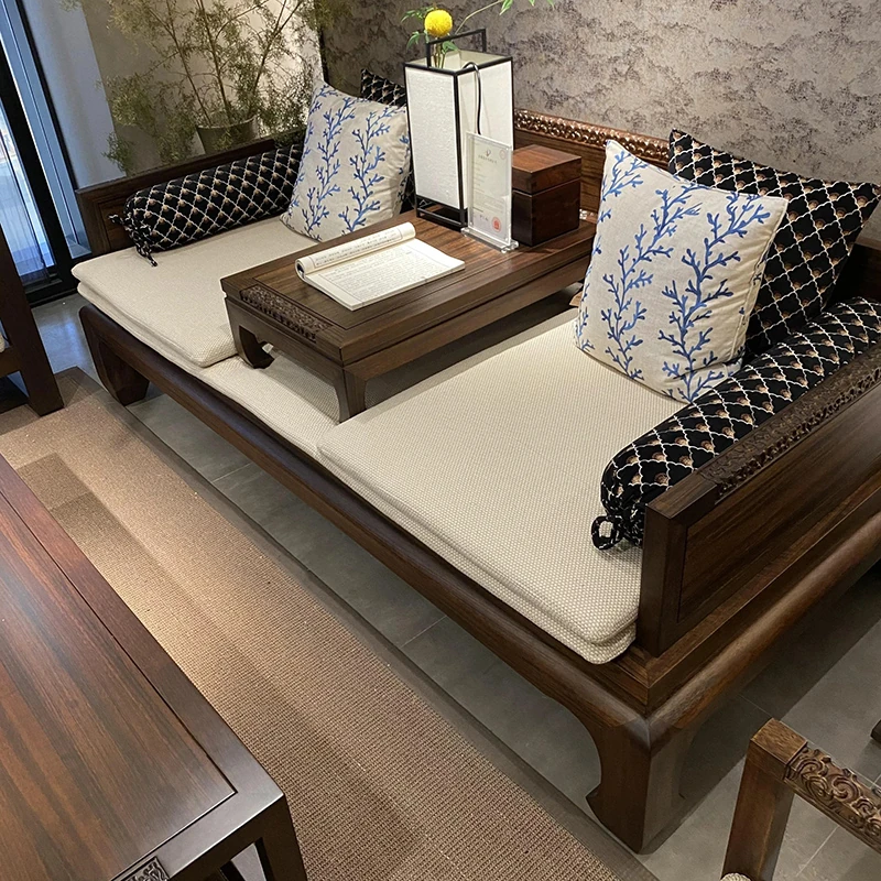 南米紫檀の無垢材使用!中華風の現代的なデザイン、冬夏両用の大容量リビングソファセット。クラシックな美しさを持つ高級家具で、贅沢なひとときをお楽しみください。
