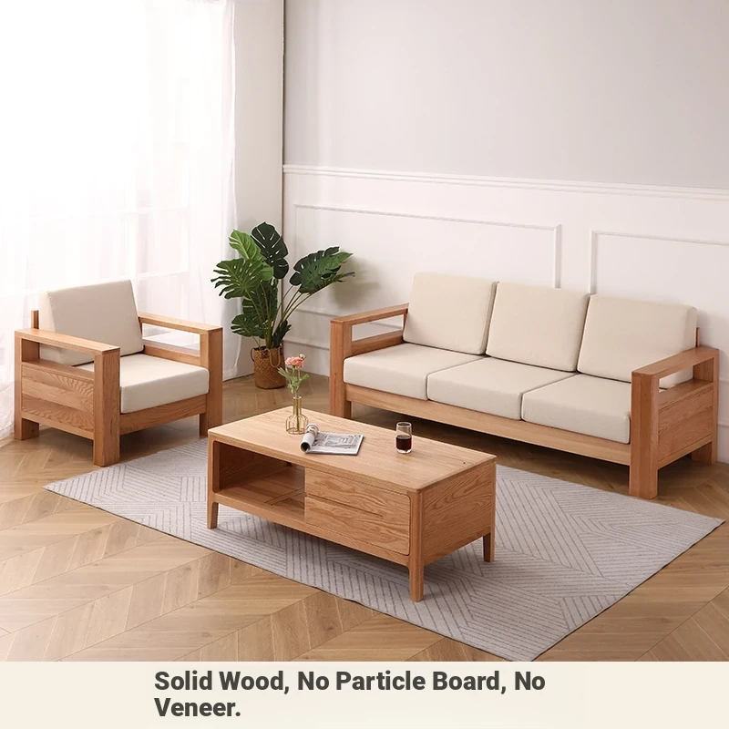 Nordic Solid Wood Sofa Set - Three-Seater, Two-Seater, and Armchair in Oak - Stylish and Minimalist Cloud Sofa Collection for Modern Living Spaces - Hot Sale!