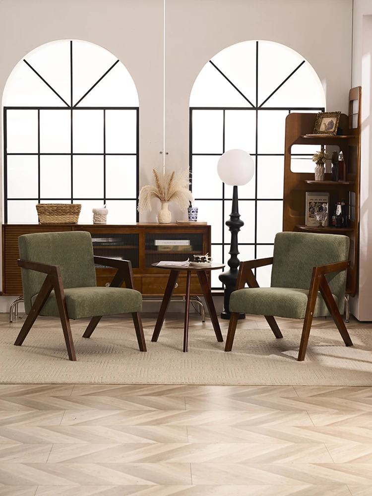 Single Armchair – Solid Wood Leisure Chair for Home, Balcony, and Living Room – Walnut Finish – Stylish and Comfortable Lounge Chair for Hotels and Relaxation
