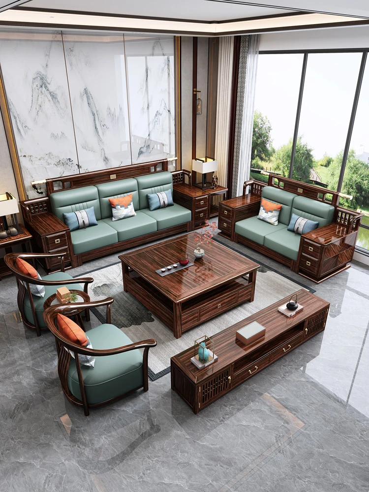 Modern Minimalist New Chinese Style Solid Wood Sofa Set - Elegant Blackwood Furniture for Living Room, Perfect for Small to Large Apartments and Villas.