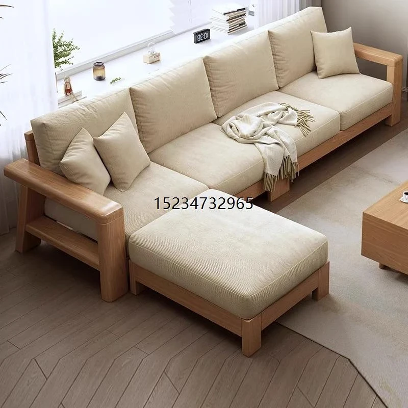 Scandinavian-Japanese Minimalist Solid Wood Sofa Set – Stylish Compact Chaise Lounge Corner Sofa for Small Spaces, Free Shipping in Hong Kong