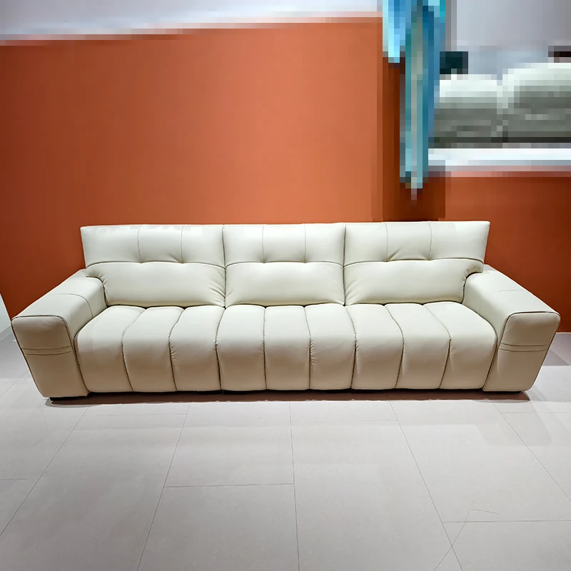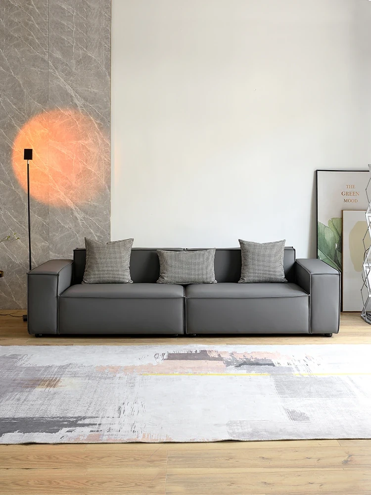 Italian Minimalist Four-Seater Living Room Sofa - Genuine Leather Nordic Simple Square Silicone Leather Modular Sofa
