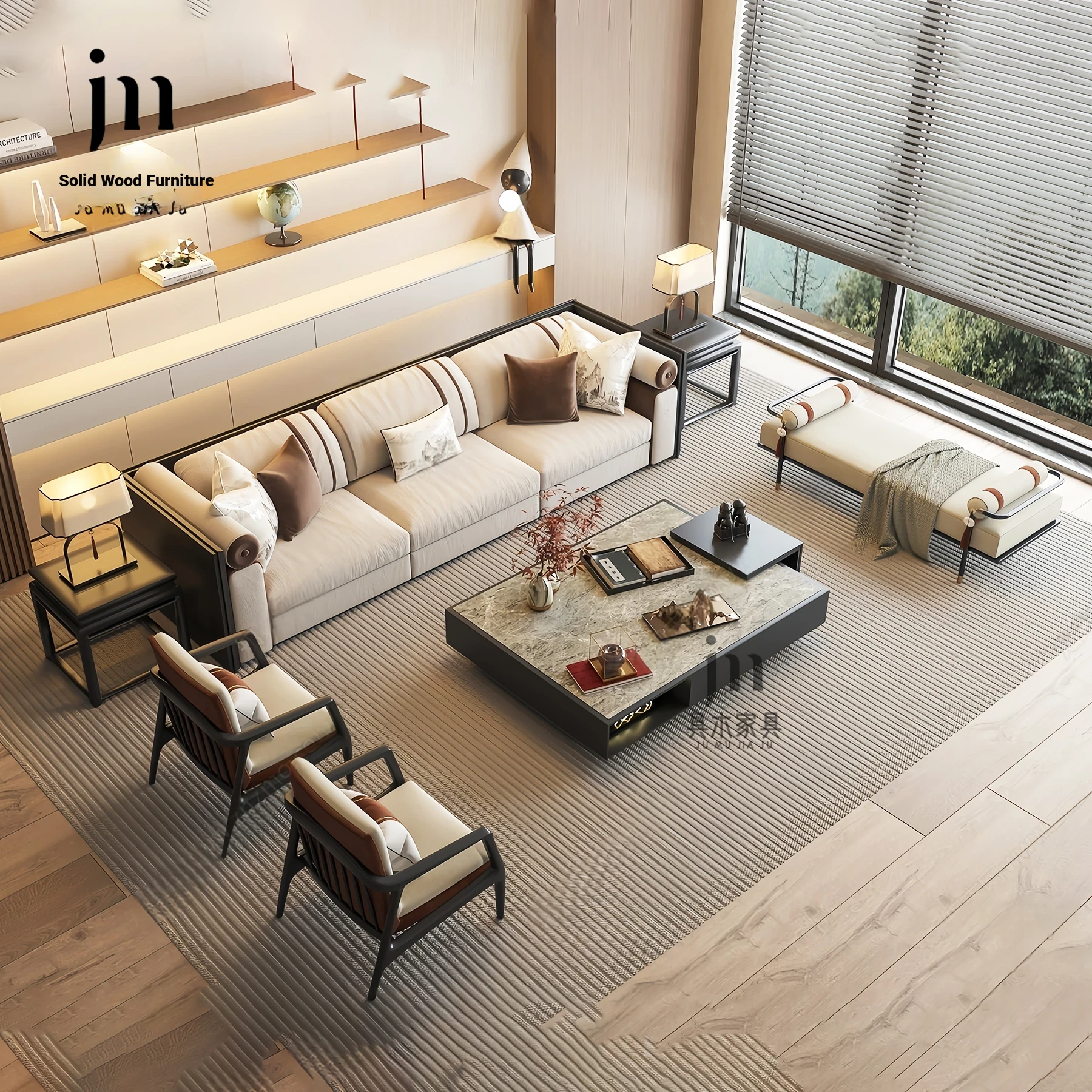 Modern Minimalist New Chinese Solid Wood Sofa Set - Chic, Vintage-inspired Luxury for Your Living Room, Villa, or Hotel - Zen-style Comfort and Elegance