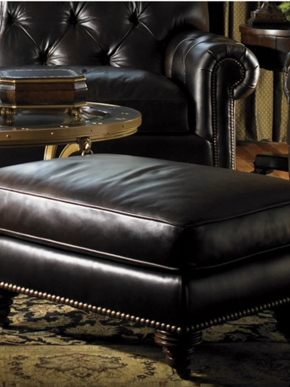 Luxurious European-Style Genuine Leather Sofa with Solid Wood Carvings - Premium Top-Grain Cowhide Corner Sectional for Spacious and Cozy American Living Rooms, Perfect for Any Size Home